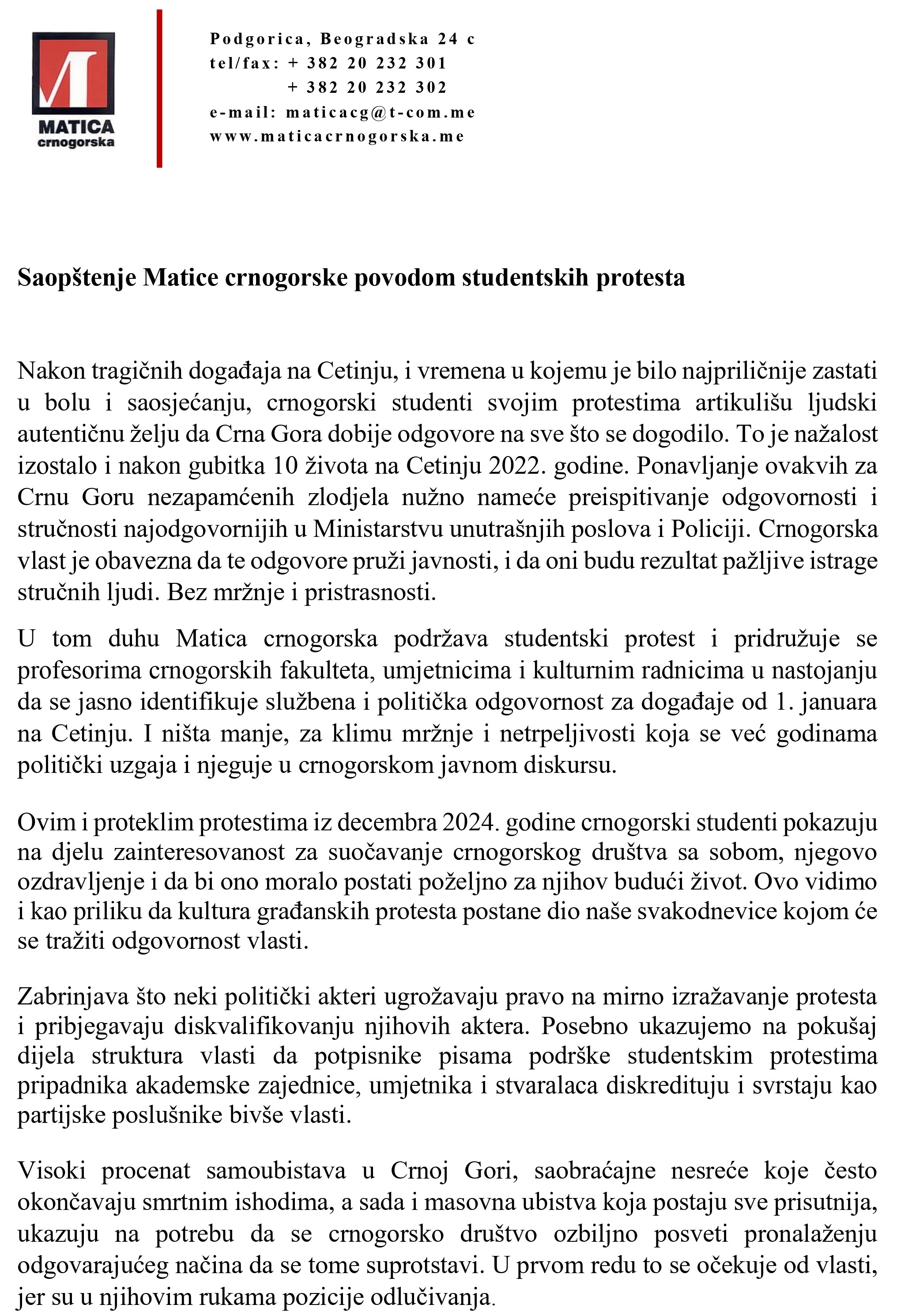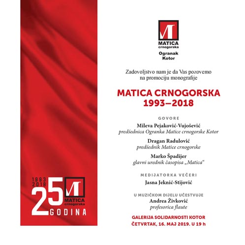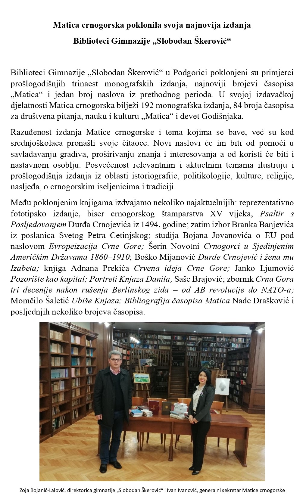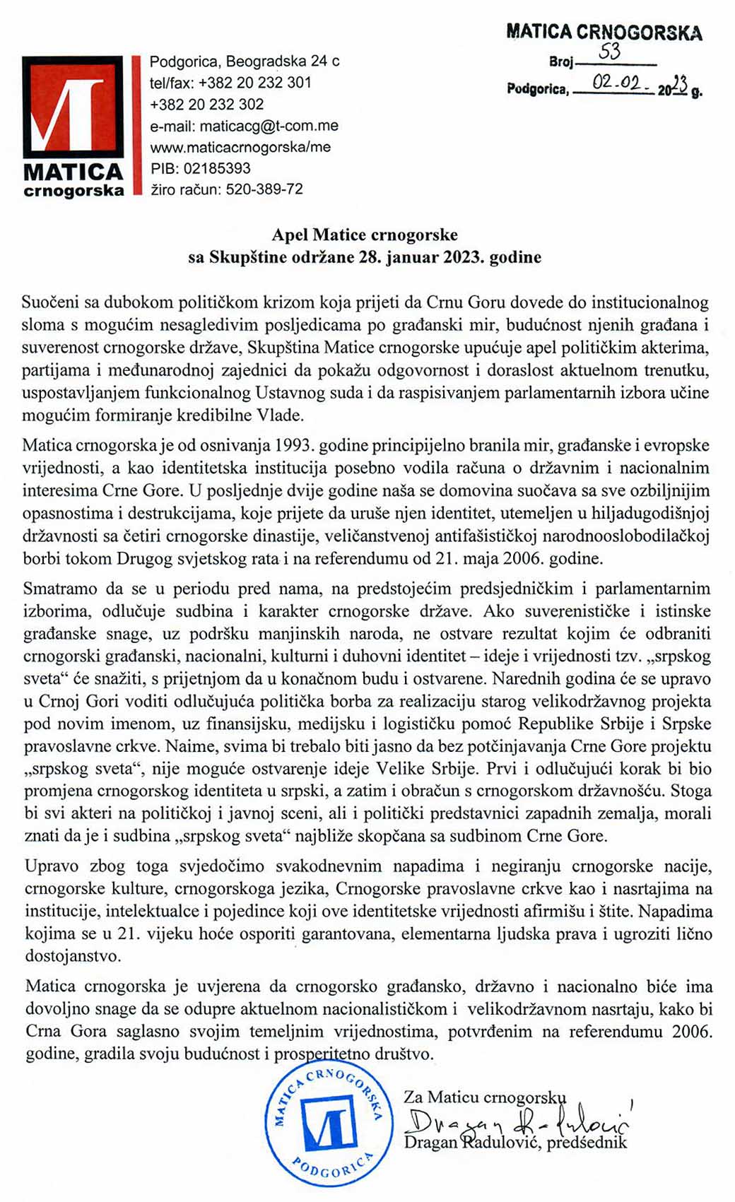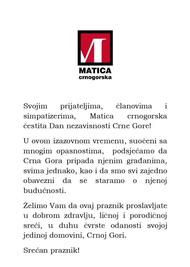 Svojim članovima, saradnicima i prijateljima, Matica crnogorska želi srećnu Novu 2024. godinu.