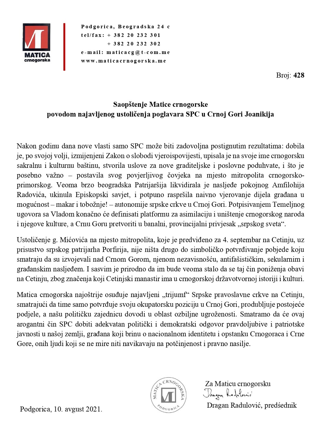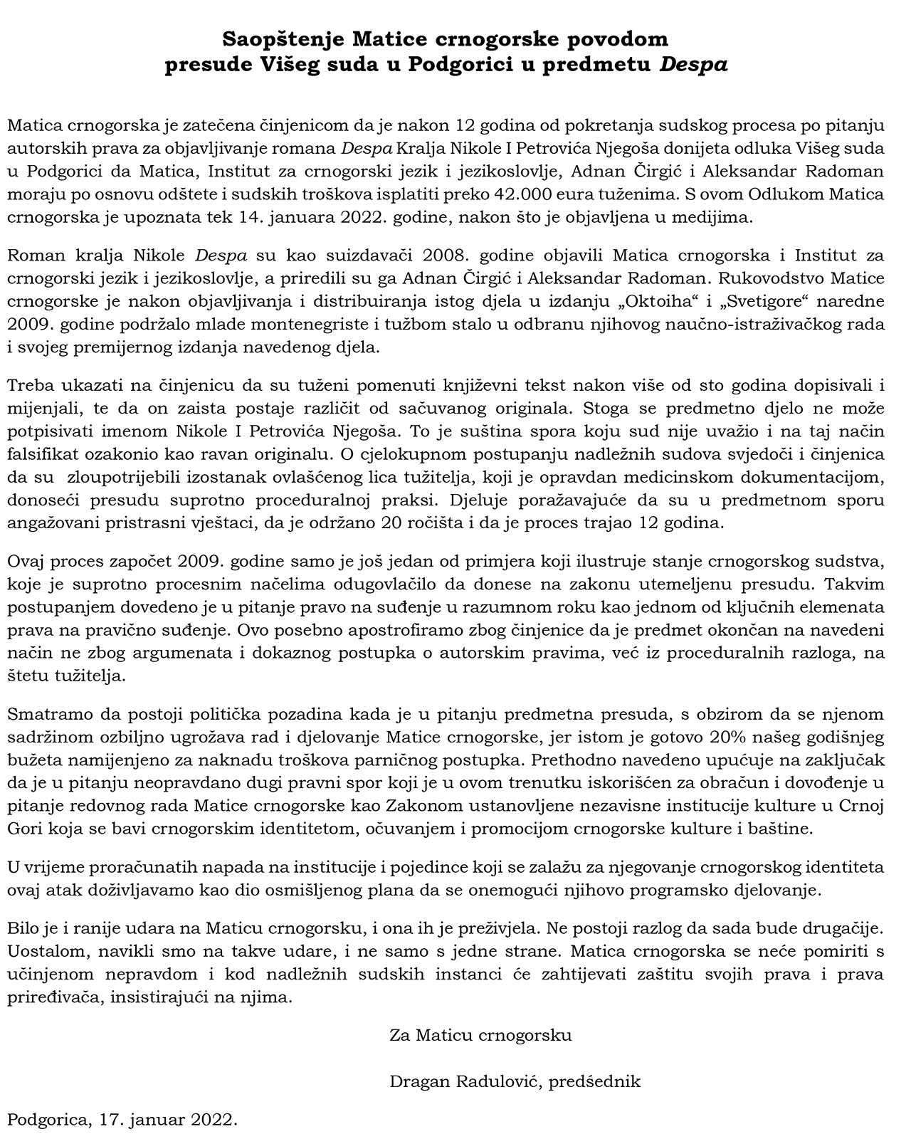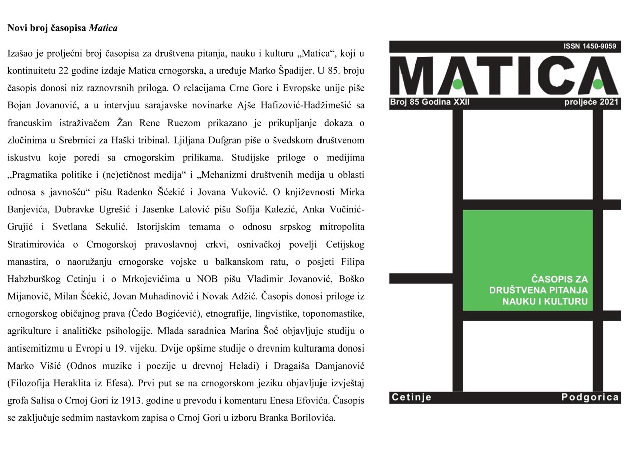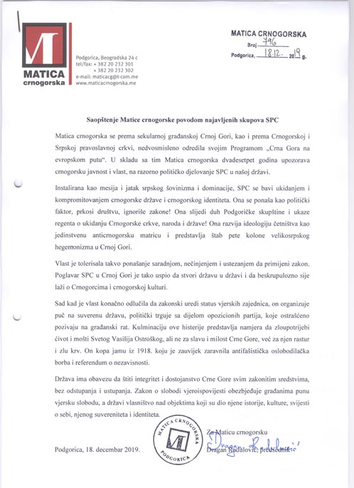 Svojim članovima, saradnicima i prijateljima, Matica crnogorska želi srećnu Novu 2024. godinu.