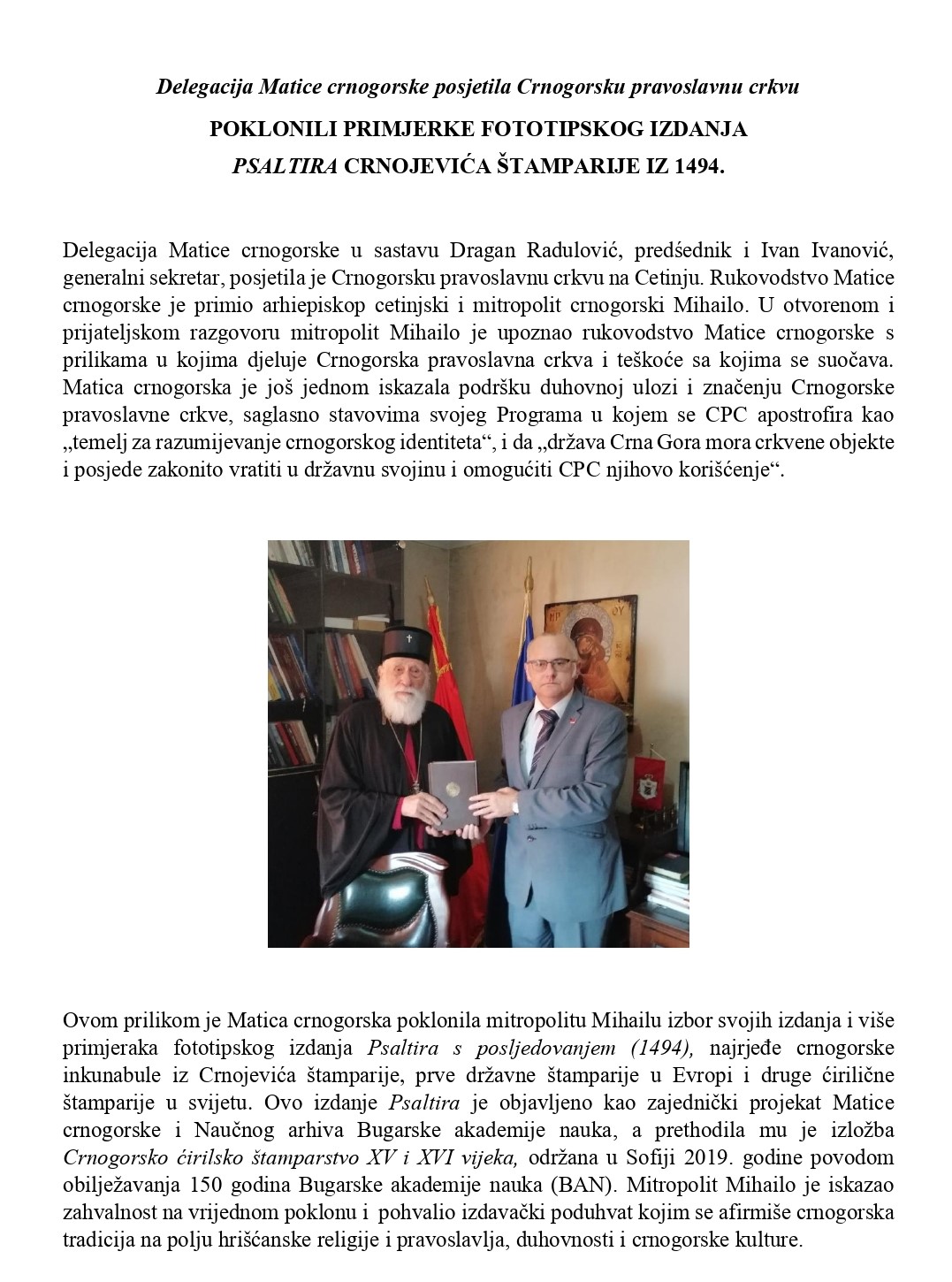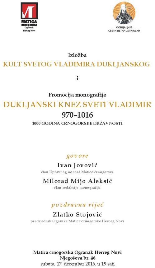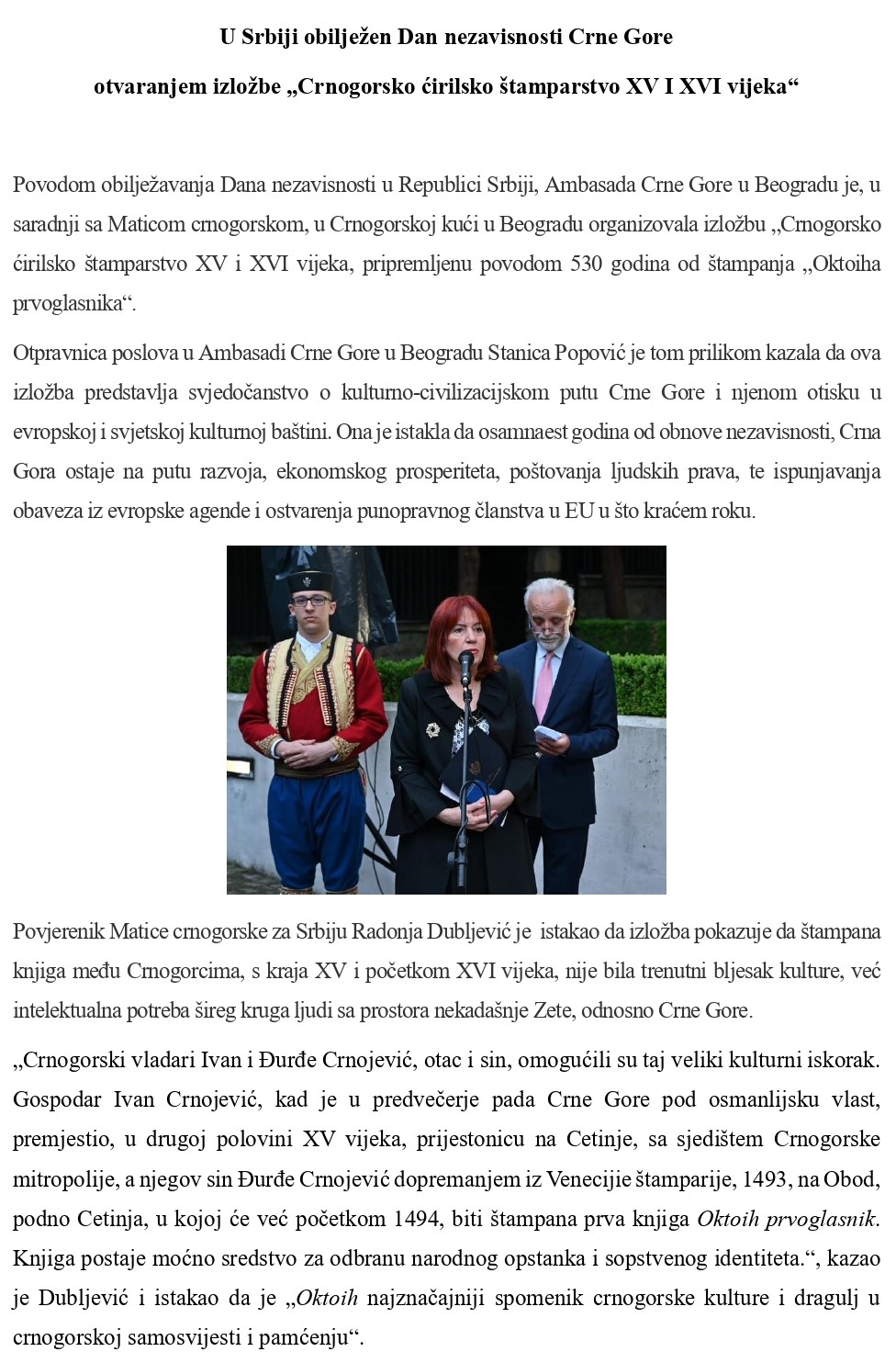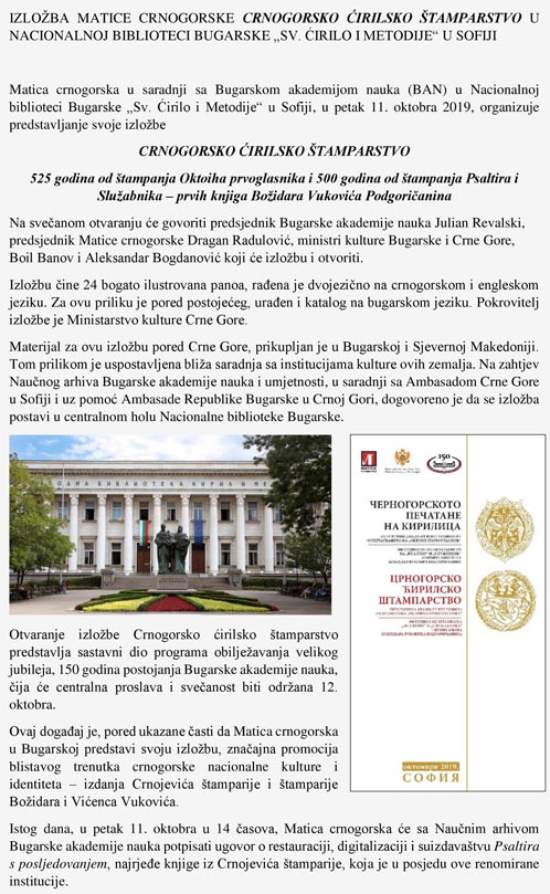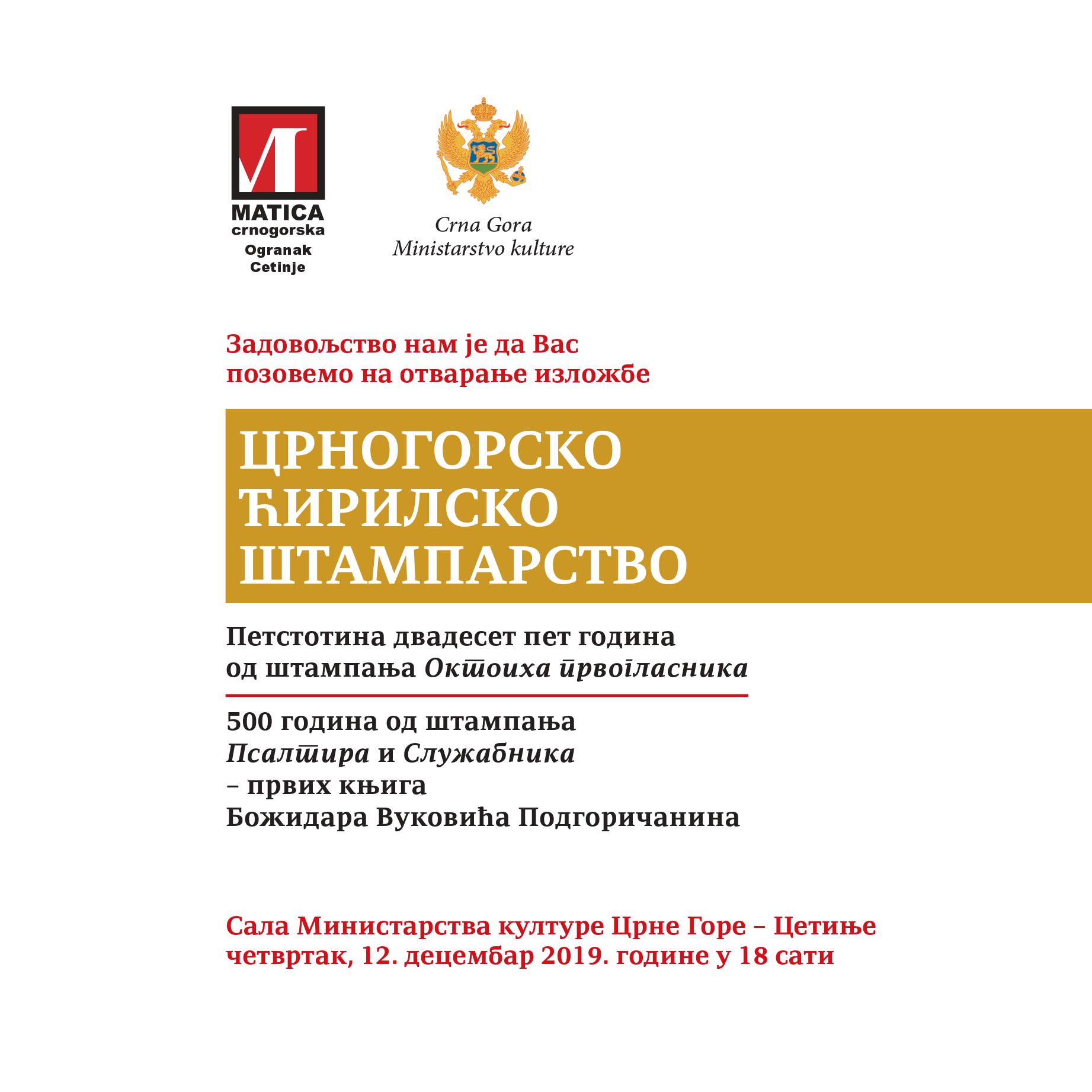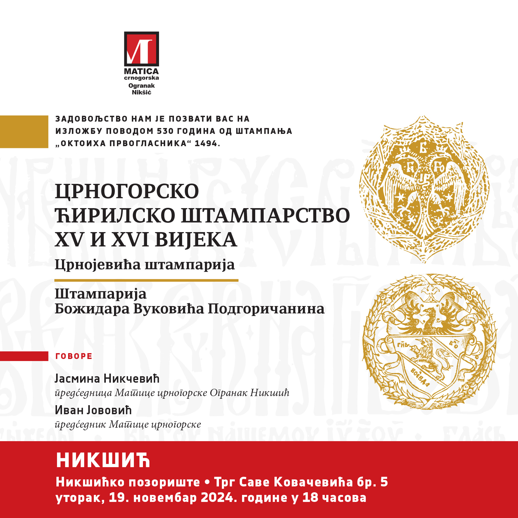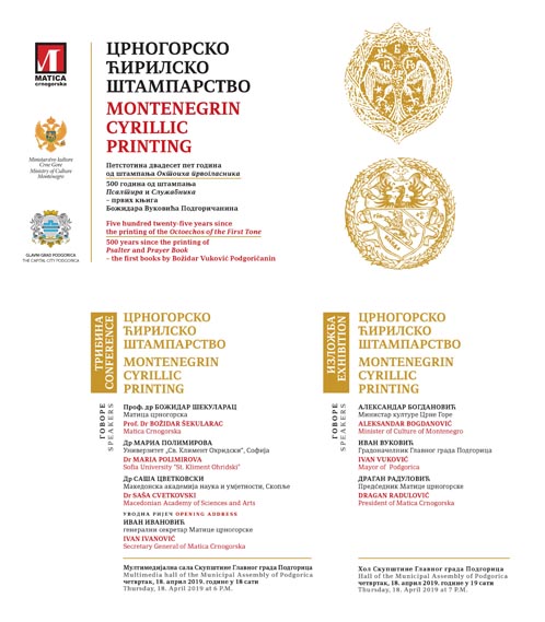 Izložbe Matice crnogorske „Crnogorsko ćirilsko štamparstvo XV i XVI vijeka“ u Pragu