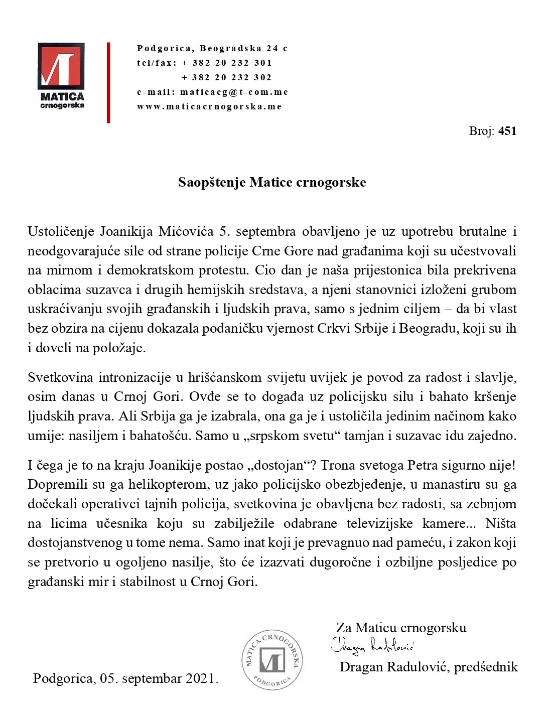 Matica crnogorska na proslavi 160 godina Matice slovenačke u Ljubljani