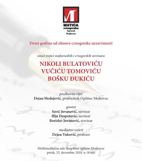 Veče povodom desete godišnjice smrti Čeda Vukovića