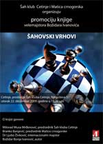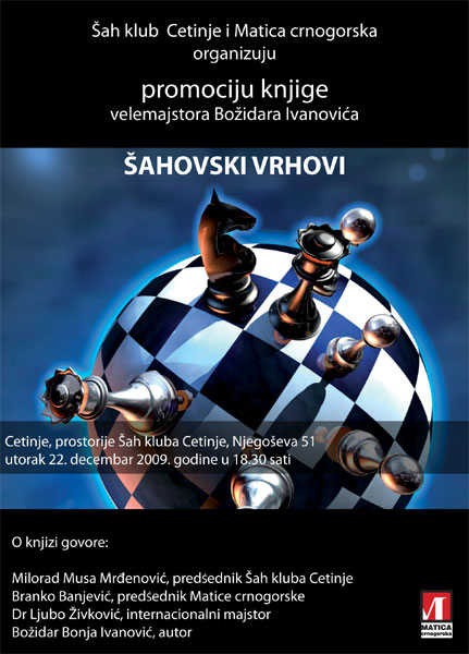 Na Cetinje je 22. decembra 2009. godine održana promocija knjige o šahu. Na promociji knjige govorio je dr Ljubo Živković (govor u pdf).